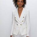 Josephine Stretch Winter Wool Blend Fitted Waist Blazer - Navy