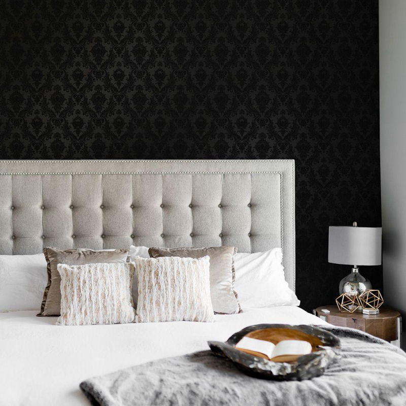Dramatic and captivating, this wallpaper seduces you with its sexy, evening glamour. Guaranteed to make a striking statement once it gets noticed, the damask pattern brings a sense of timelessness and mystique to any room. Dark and moody interiors beckon you to go back to sleep, which makes the bedroom an ideal choice for the cool monochrome aesthetic. However, its peel and stick design will allow...