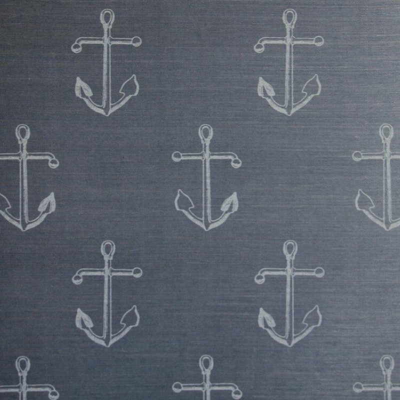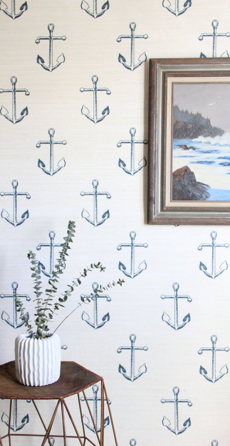 The nautical graphic Holden gets a makeover on a textured grasscloth.