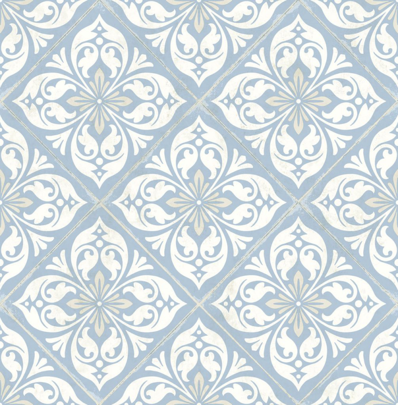 Plumosa Tile Wallpaper In Carolina Blue And Arrowroot From The Luxe Retreat Collection By Seabrook Wallcoverings