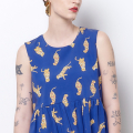 The Shari is a pop over shell top with a High Lo ruffled peplum. There is a button and keyhole to finish the back neck and is a tank style. The bodice is lined. Shown here in our Exclusive Royal Tiger print on Sustainable ground.