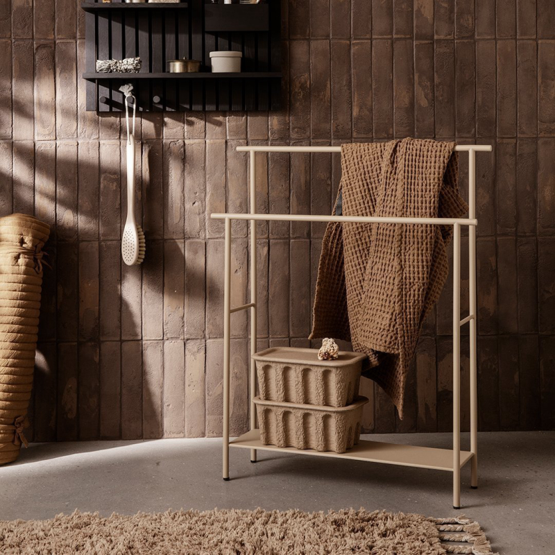 Originally consisting of just the Dora Clothes Stand, the Dora family has expanded to include a series of freestanding furnishings that are ideal for bathroom. Made from powder-coated metal, the simple yet functional designs are rust-resistant, so are ideal for use in damp conditions. The Dora Towel Stand allows you to hang several towels at once, as well as providing you with extra storage space below.