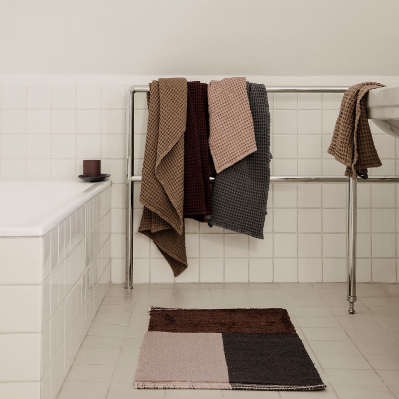 Woven from a rich mix of cotton yarns and recycled polyester, this series of mats presents tufted loops, forming an irresistible texture and an oasis for your feet on cold bathroom floors. With contemporary color blocking in more colorways, the mat has a classic and straightforward expression. Using recycled polyester, you get a mat produced with consideration to our planet and a very durable textile,...