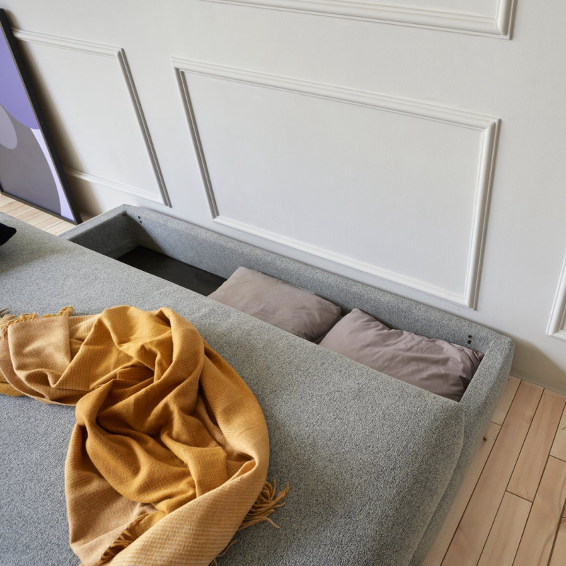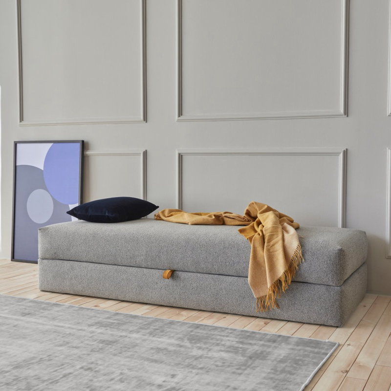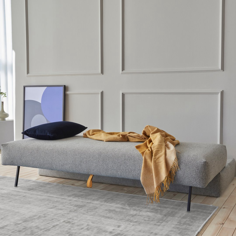 A unique daybed that has extraordinary daybed features. Walis holds two large back feather filled cushions and a dual pocket spring mattress ensuring an extra soft feel, seat, lounge or sleep. The legs open automatically when pulling the stylish leather strap and provides a roomy storage space. The basic solution intended to be placed against a wall. A soft daybed that serves well in the living- or...