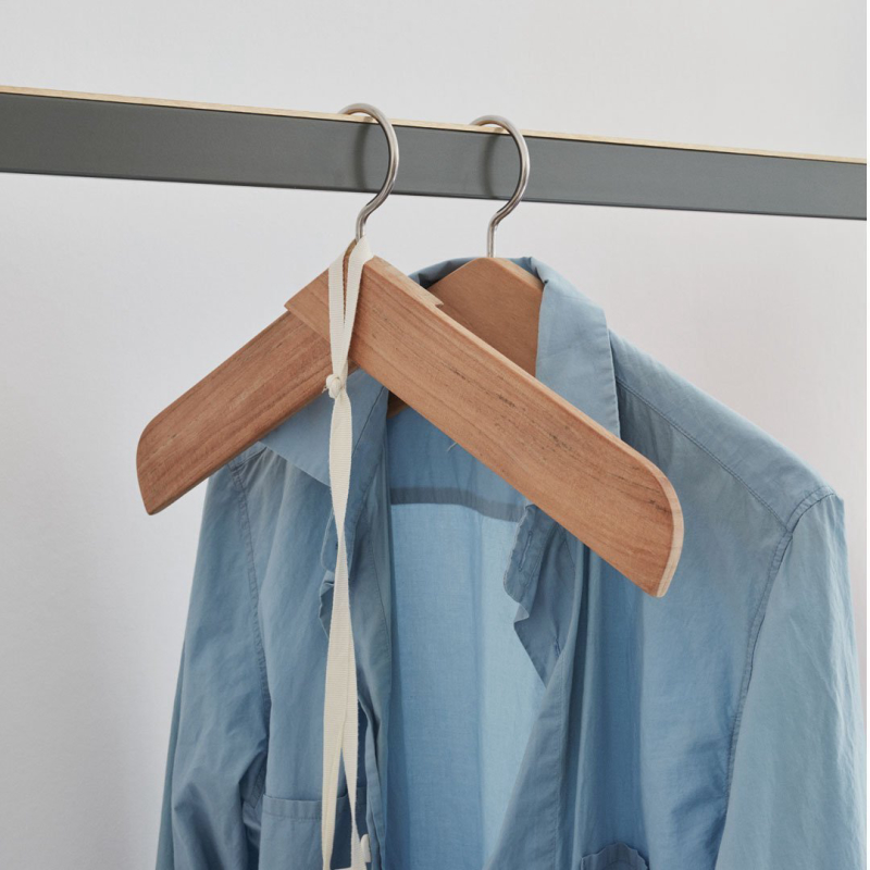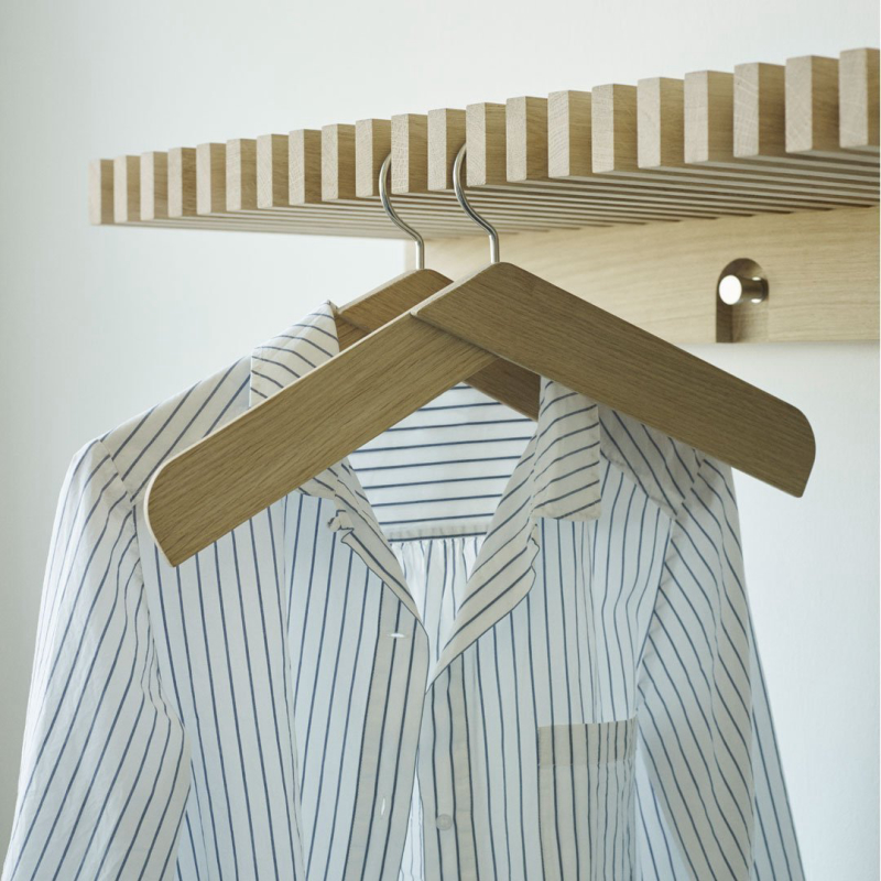 Hang your shirts, dresses and jackets on this modern Collar hanger. The design is made from two thin and overlapping pieces of wood - creating a two-dimensional look.