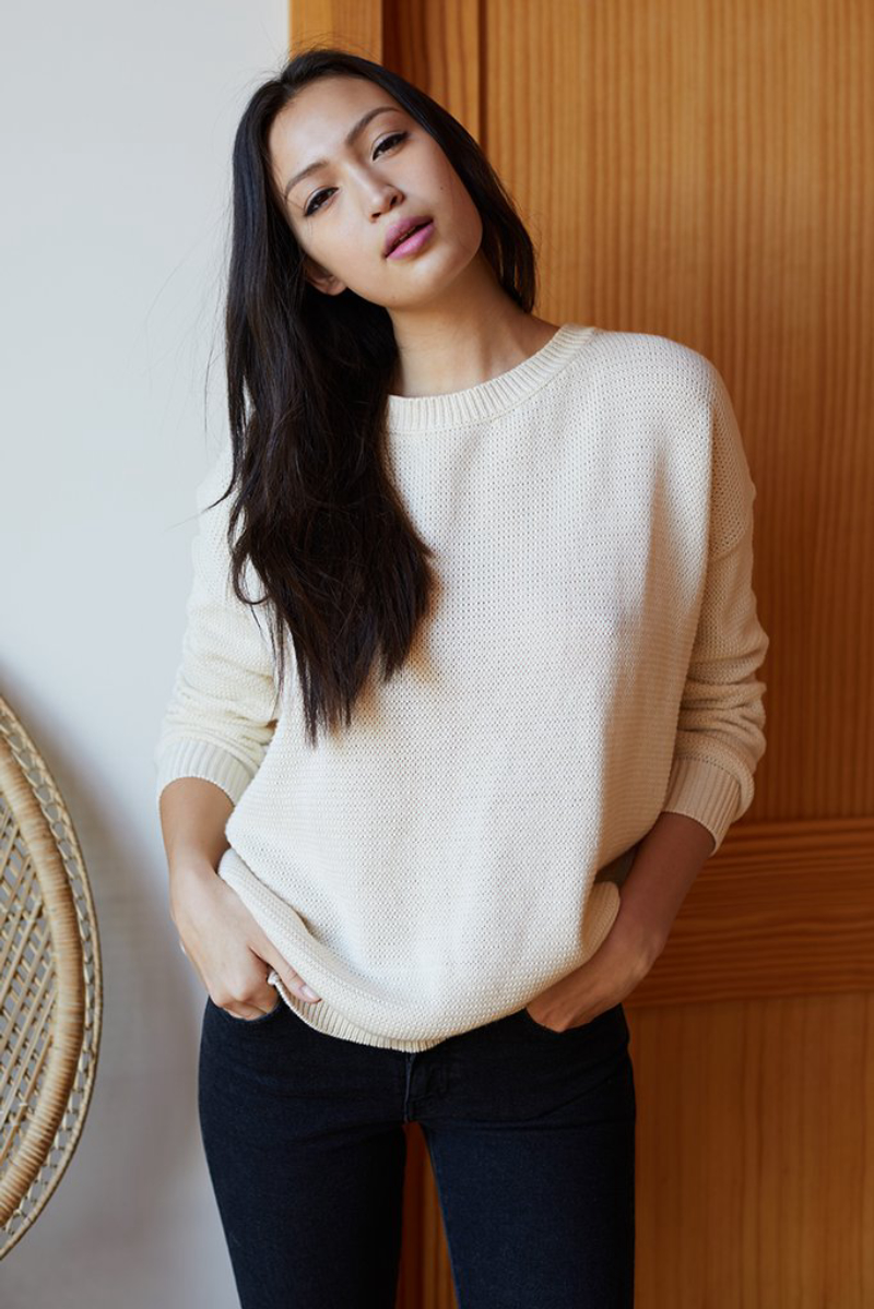 A relaxed, go-to, year-round sweater in a boxy silhouette. Creates an easy, balanced shape on the body and pairs well with any bottom. Drop panel detail in back provides a bit more coverage.