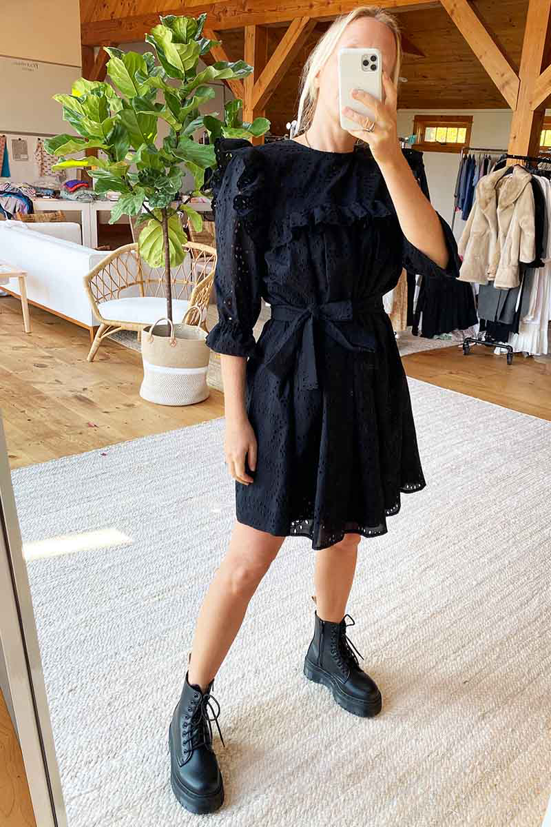 Flutter ruffle detail at shoulder and bust line