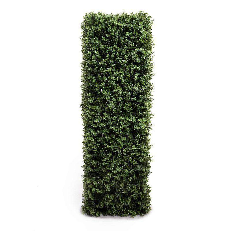 Our outdoor boxwood greenery is perfect for decorating a garden party or for creating green spaces indoors. The lifelike boxwood foliage is UV stable for 5 years and won't fade, even in full sun or weather exposure. The 42" high square column design looks great when paired with our boxwood hedges or balls....