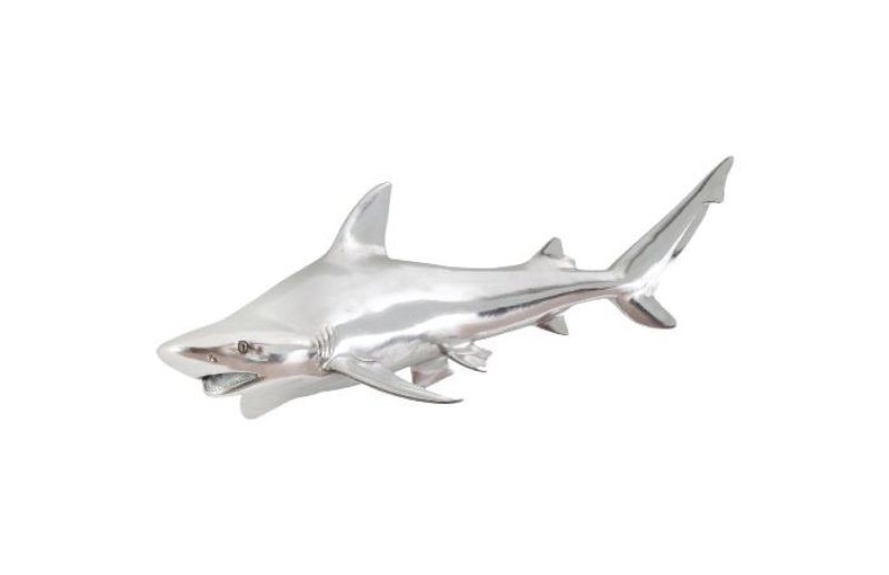Realistic resin casting of various fish finished in silver leaf for a contemporary look. Special mounting hardware allows for adjustment on the wall so the fish can appear to be swimming.