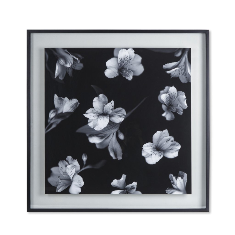 DescriptionDimensions: 1.5" D x 43.5" H x 43.5" L A contemporary piece that adds instant drama to any space, featuring a black and white photograph of a flower, suspended in a glass. France and Son is an authorized seller of this product.