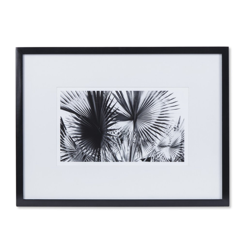 Dimensions: 1.5" D x 17.5" H x 23.5" L A contemporary piece that adds instant drama to any space, featuring a black and white photograph of palm leaves, mounted within a satin black solid wood frame. France and Son is an authorized seller of this product.