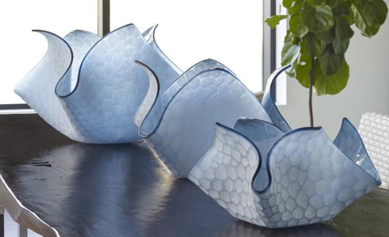 Proving the talent of the Phillips Collection glass artisans, this Large Blue Glass Bowl has been folded into a luminous blue decorative...