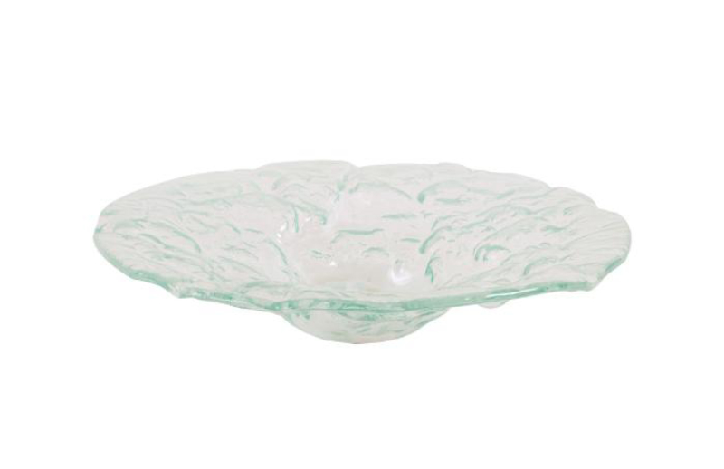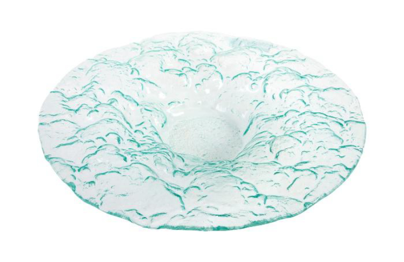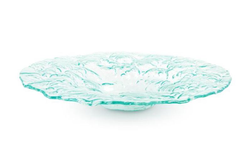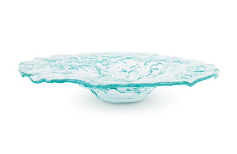 Made of glass with a turquoise sheen, the Large Bubble Bowl is stamped with a flowing pattern that is created when molten glass is laid onto...
