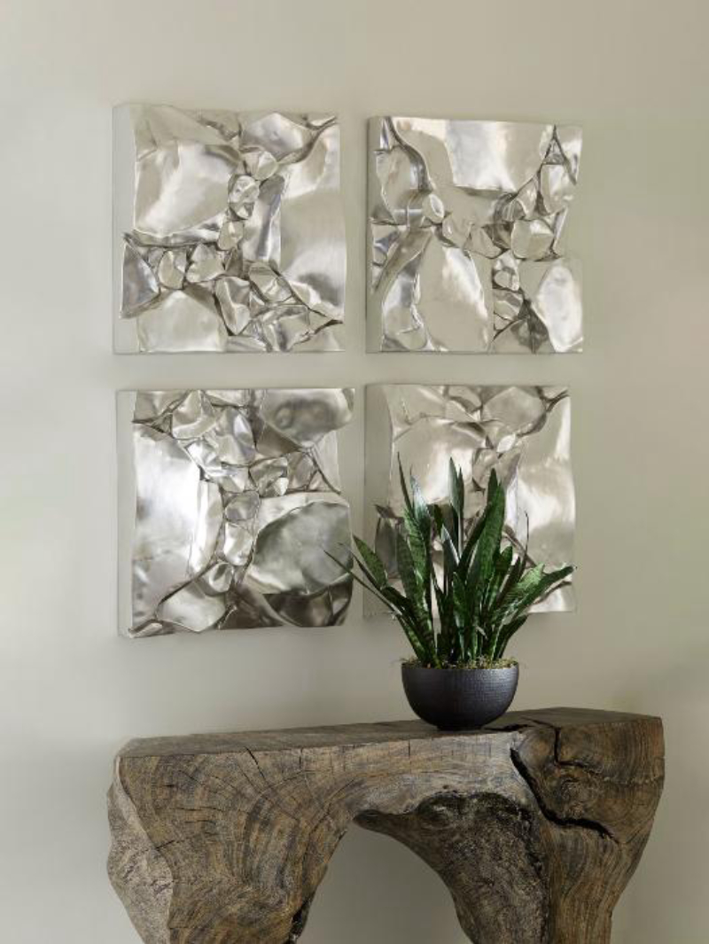 Resembling a detail of stacked stones, the Cairn Wall Tile, is cast in artisan-grade resin and hand-finished in silver leaf. Dramatic in scale and versatile in application, these are sure to get the conversation started. France and Son is an authorized seller of this product.