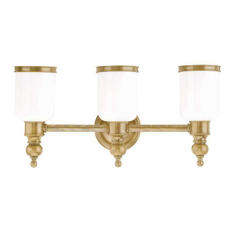Dimensions: 10'' H 21'' W 6.25'' D Weight: 7 lbs Bulb: 3 100 Watt, E26 Medium Base - A19 Bulb, Bulb Not Included Wire Length: 6'' Material: Brass The wonders that surround our design studio in New York’s storied Hudson River Valley are an endless source of inspiration for our fixtures. With the unrivaled cosmopolitan glamour of Manhattan, the strong architectural history of colonial settlers, the...