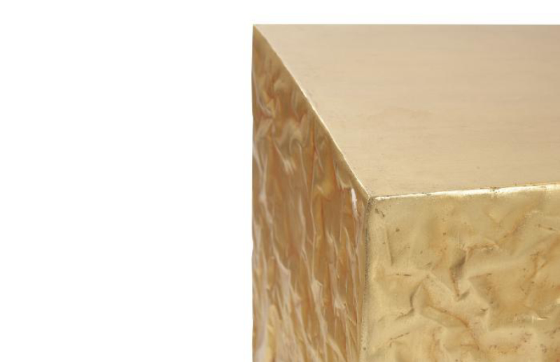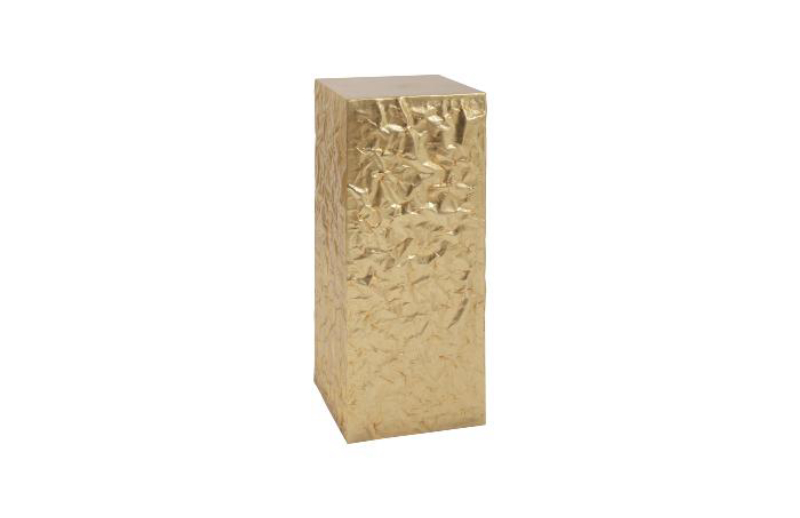 Sculpted and cast in resin to look like a crumpled metal and hand finished in gold leaf. This pedestal is striking and makes a statement in any space. France and Son is an authorized seller of this product.