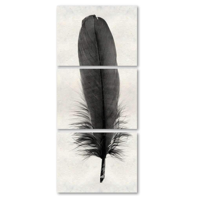 Simultaneously subtle and striking, this 3 piece feather print adds simplicity and beauty to any room it is placed in. Classic black and white imagery allows this feather print to cohesively blend in with any decor style. This handmade paper gives a unique "worn" look which seamlessly merges both traditional...