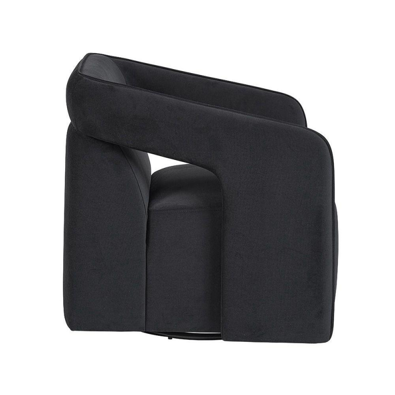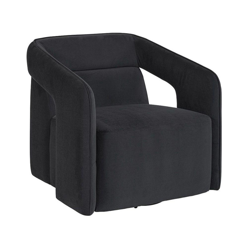 A futuristic swivel chair from our 5West collection. Features cut out arms and a large, comfortable seat in abbington black or belfast heather grey fabric. France and Son...