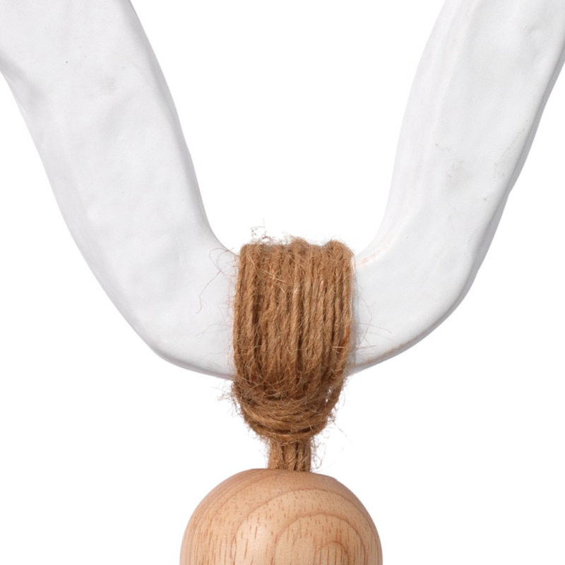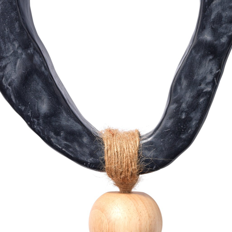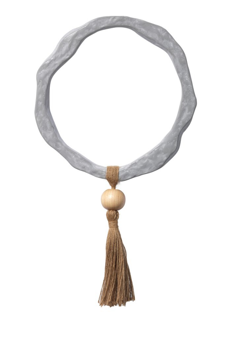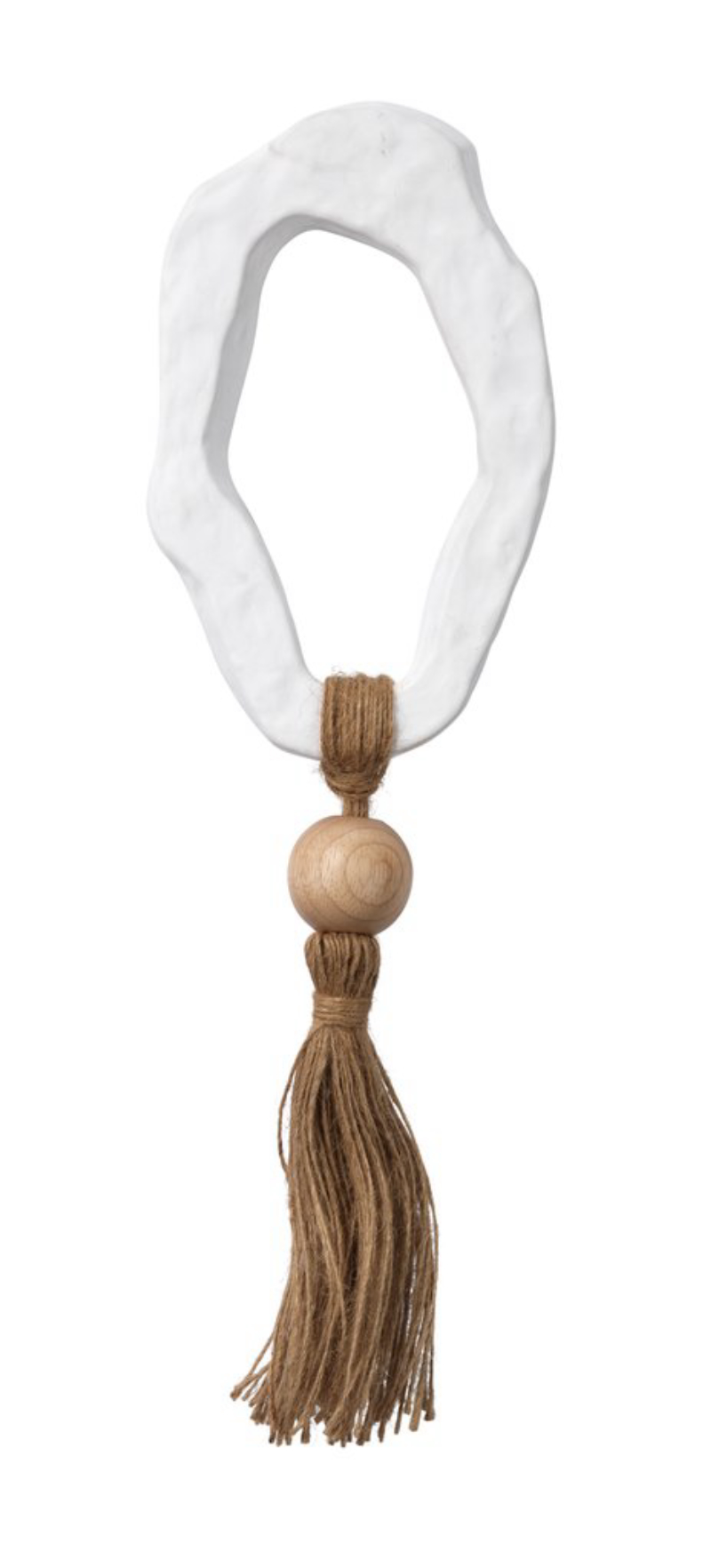 Color: White, Black & Grey w/ Natural Wood Bead & Jute Tassel