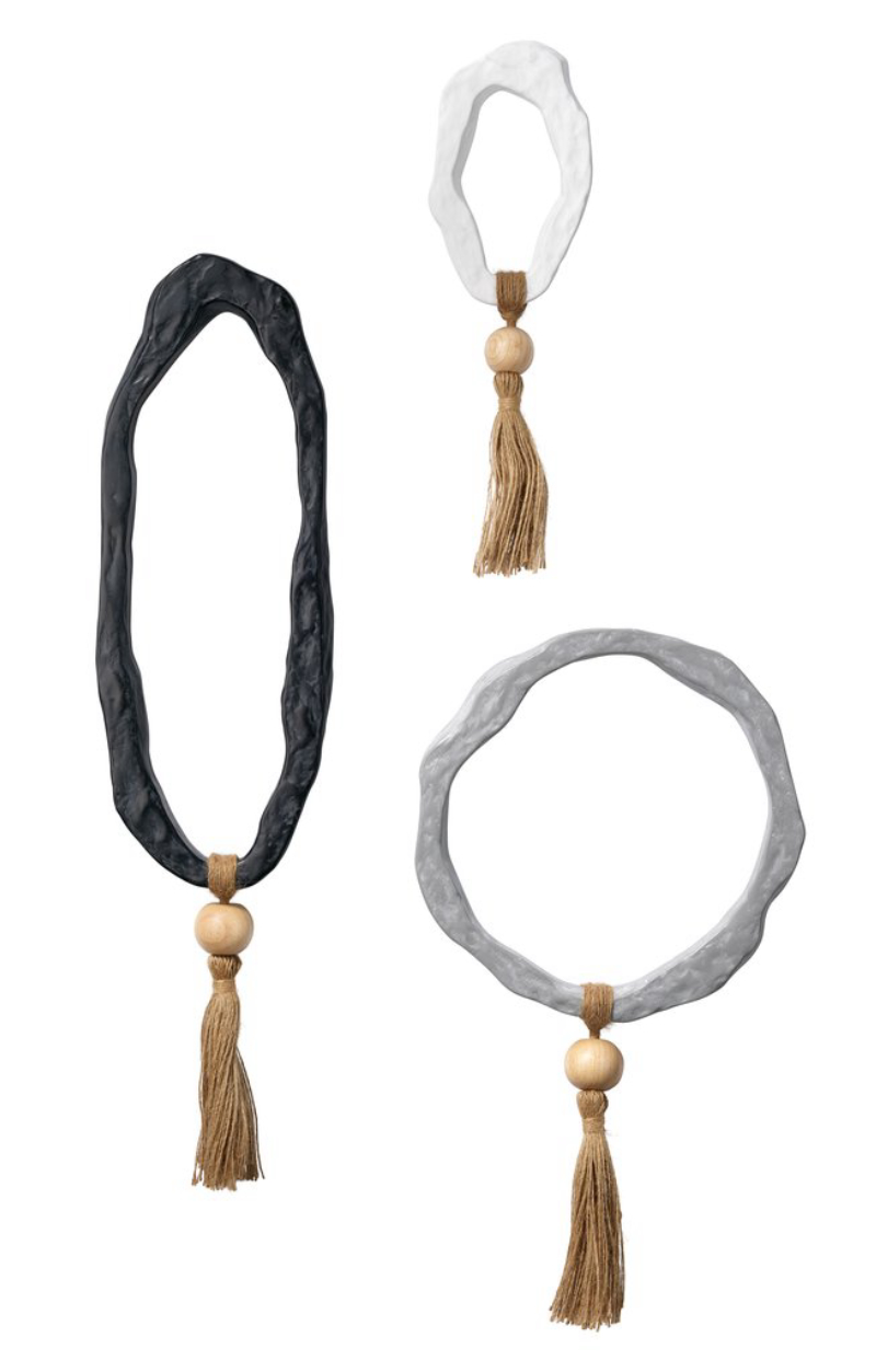 Inspired by Jamie's travels in the East, this set of three decorative hangings add instant intrigue to any wall of the home. Three organic, free-form resin rings draw the eye to an expertly hand-knotted sisal rope and a single natural wood bead. Soothing shades of...