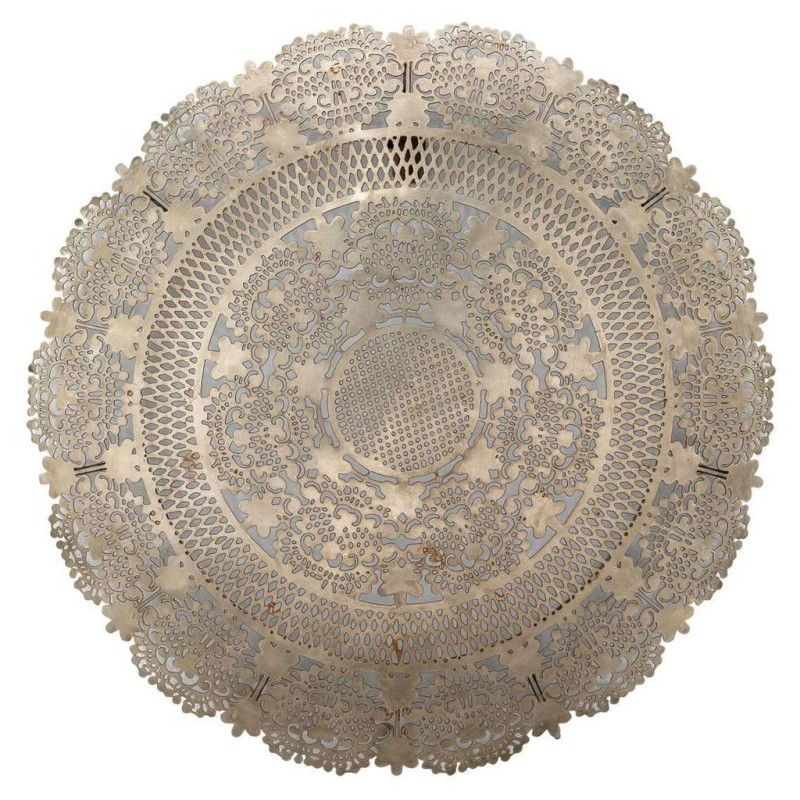 DescriptionFixture Dimensions: 19"H x 19"W x 3.5"L Material: Metal Finish: Antique Silver Decorative wall art inspired by feather light lace patterns reimagined in ornate metal work. France and Son is an authorized seller of this product.