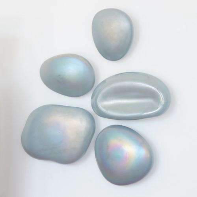 Glass Wall gems made of polished glass with a metallic light sapphire washed finish. Set of 5. France and Son is an authorized seller of this product.