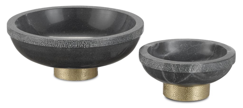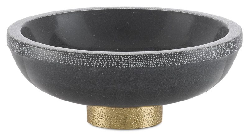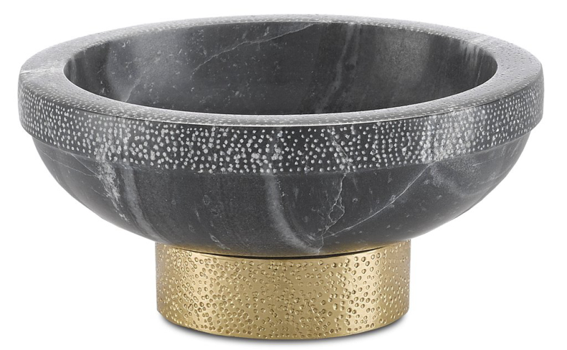The Valor Small White Bowl is made of white marble and brass in a brass finish, the golden tones...