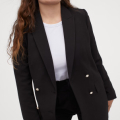 Josephine Stretch Winter Wool Blend Fitted Waist Blazer  - Navy