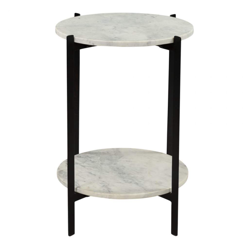 A modest piece of living room décor, the Melanie accent table keeps its class through tonal shades. Beautiful white marble slabs are held together by a two-tiered iron base with a matte-black finish. The end result of the Melanie accent table is a subtle contemporary piece that can be used for adding plant décor on one layer, and resting your coffee on the other.