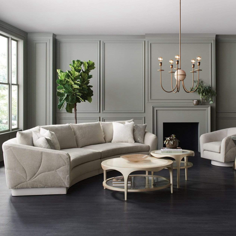 Free-flowing and organic, Fanciful’s soft curves are artfully accented by a quilted ginkgo leaf pattern, fanning out along the back and sides. Its nature-inspired design adds dimension and graphic interest, complemented by a curved plinth base wrapped in pearl vinyl. Expertly tailored in tonal gray performance fabrics, inside and out, and trimmed in contrast welt. For a finishing touch, we’ve added...
