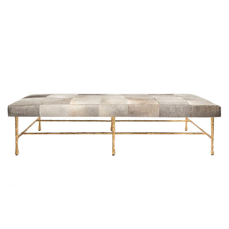 DescriptionThe metal base has an understated sculptural feel. Finish: Gold Pitted Iron (Shown) 68"L x 28"W x 19"H