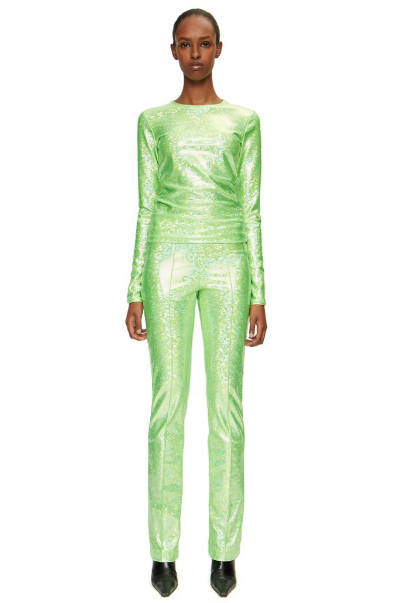 SLIM-LEGGED PANTS WITH STRETCH AND SHIMMER
