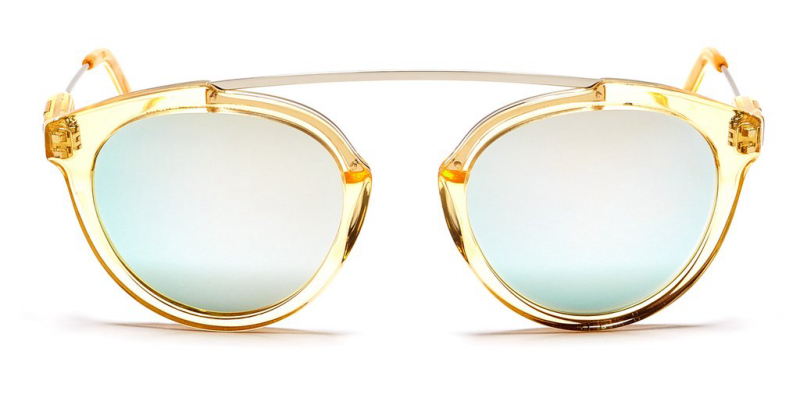 Frame: Polished Champagne Acetate Metal: Polished Silver Lens: Bright Silver Mirror Signature Side Inlay: Super Gold